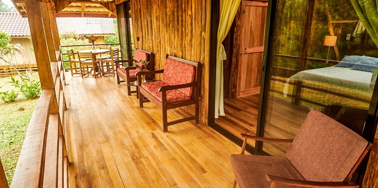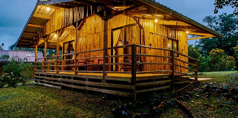 Santa María Volcano Lodge, ubicado en Colonia Blanca, Costa Rica, ofrece una experiencia auténtica y rural con 9 cabañas rústicas rodeadas de naturaleza exuberante. Este alojamiento es ideal para desconectarse del mundo, disfrutar de la tranquilidad, y sumergirse en el entorno natural.